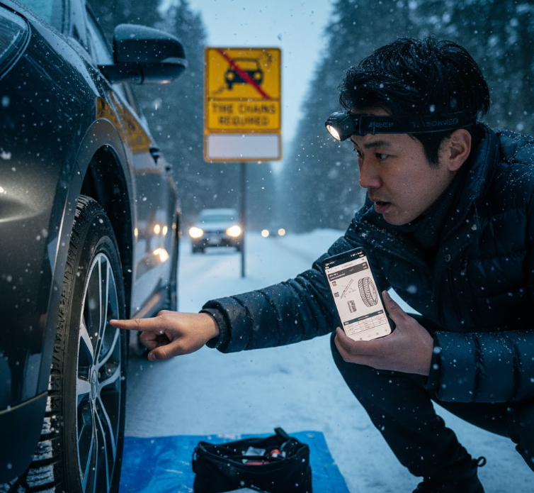 その理由は、雪道や凍結路ではノーマルタイヤはもちろん、スタッドレスタイヤでもグリップ力が不足し、スリップや立ち往生を引き起こす可能性があるからです。