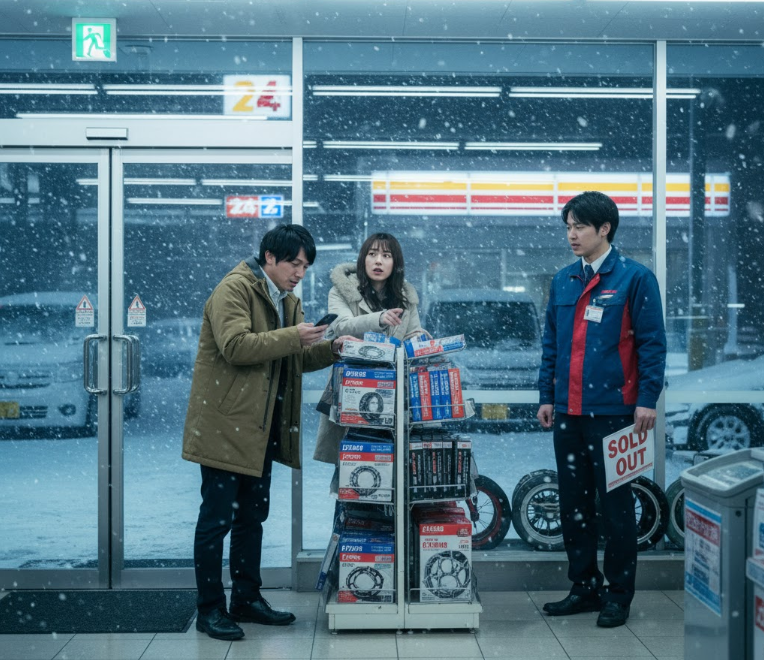 突然の降雪予報や、予期せぬ積雪でチェーンが必要になった際、緊急で役立つ購入先を知っておくことは大切です。