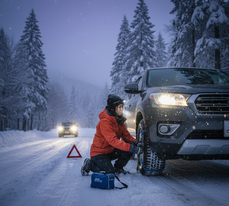 その理由は、雪道や凍結路ではノーマルタイヤはもちろん、スタッドレスタイヤでもグリップ力が不足し、スリップや立ち往生を引き起こす可能性があるからです。