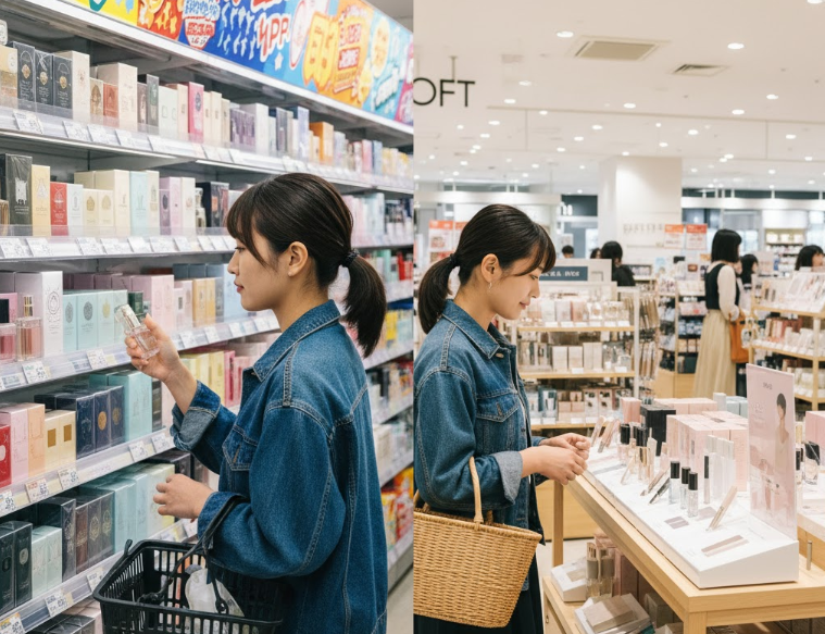 これらの店舗で取り扱われる化粧品やフレグランスは、日常的に使用する低価格帯の商品が中心です。