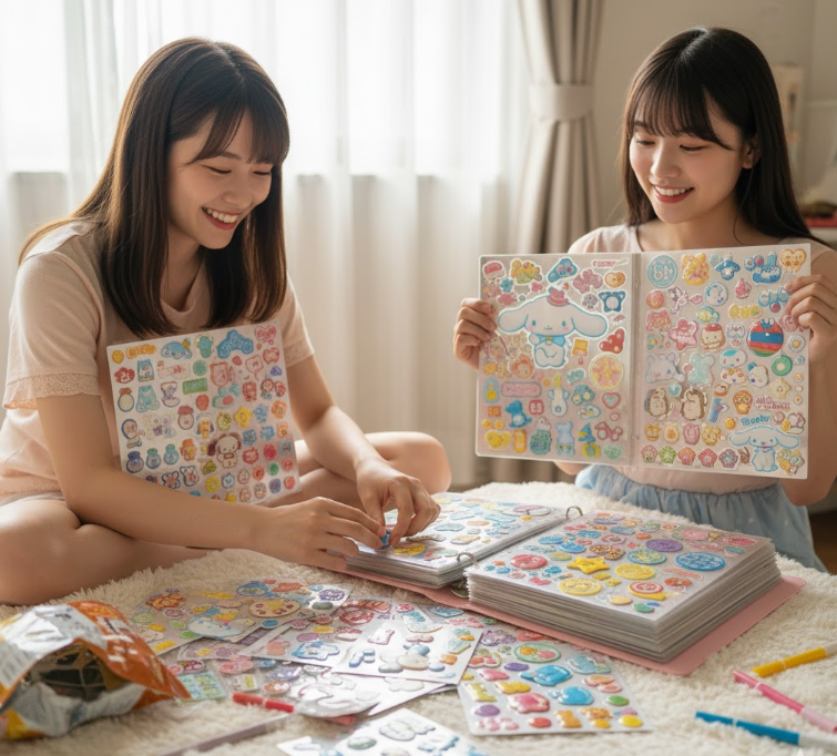大人にとっては懐かしいアイテムが、若い世代には新鮮で魅力的なデコレーショングッズとして映ります。親子で一緒にシール帳を作ったり、友人間で交換したりと、コミュニケーションのきっかけにもなっています。