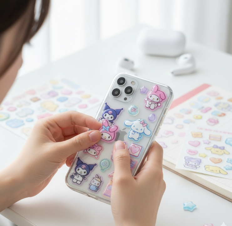 特に透明なクリアケースとの相性は抜群で、ケースの内側や外側にシールを貼るだけで、世界に一つだけのオリジナルケースが完成します。キャラクターを等間隔に並べたり、ランダムに散りばめたりと、デザインの自由度が高いのが魅力です。