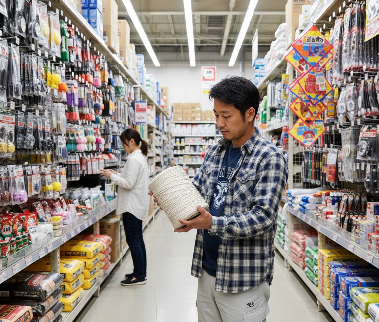ホームセンターは、凧揚げや工作用の糸の宝庫です。「DIY・資材」コーナーに行ってみましょう。